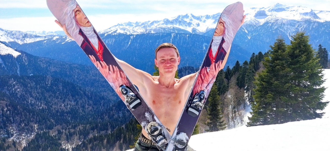 Погнали кататься на горных лыжах в купальнике по горам красной поляны! ;)